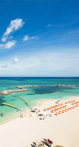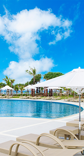 “Nuchigusui” means “medicine for life” in Okinawan regional dialect. It is our all-weather facility consisting of an indoor pool, Japanese bath, private baths, fitness gym and Spa to offer a healthy and relaxing time.