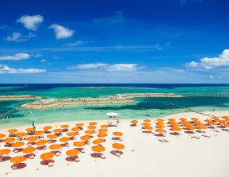 246 guest rooms are all equipped with a balcony to ensure the comfort as your home away from home during your resort stay. In the South Tower, guest rooms are 50sqm in size and are designed with traditional Okinawan texture patterns and décor to enhance the resort ambience. In the Main Tower, we offer Maisonette rooms that consist of two floors including a tatami area, providing ample space that can be recommended for a family.